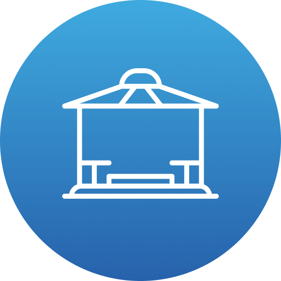 16' x 16' attached cover expands outdoor living space and connects seamlessly with the poolscape.