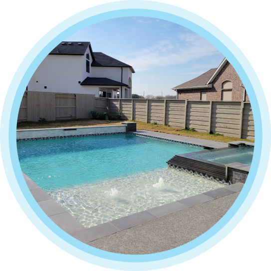 The Jackson family was referred to us by an existing client that we have previously worked with, which was her neighbor. The Jackson family were looking to find a match that fits their style as of the design and quote. Multiple designs were created until satisfied with the outcome and ready to move forward with the project. The project consists of a pool and spa combo, Jets in the spa, a tanning ledge, 2 bubblers on tanning ledge,3 pool lights and 1 spa light that change colors, raised wall with two columns on each side that include 1 scupper, plaster is stone scapes- aqua cool.