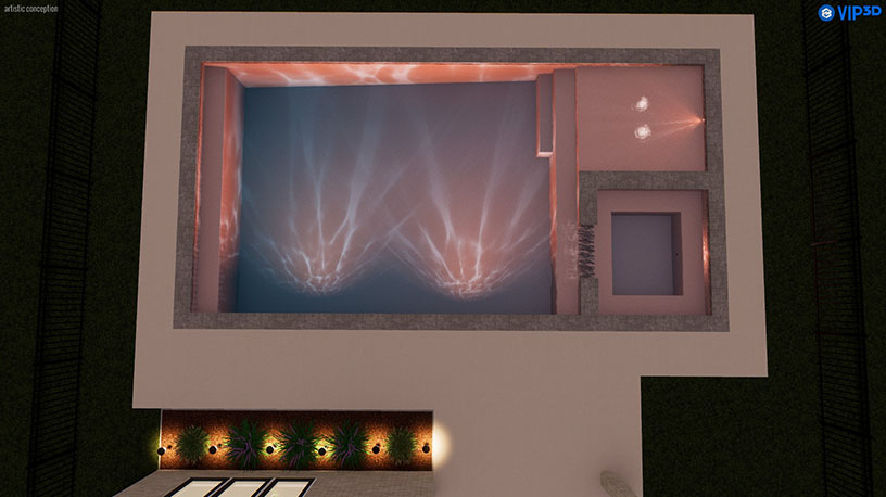 The design is further elevated by six deck jets and two bubblers, creating stunning water displays. With two skimmers and six strategically placed lights, the pool ensures both functionality and ambiance. The 450 SQFT Concrete spray deck provides ample outdoor space, while the Wi-Fi-enabled VSF pump offers effortless maintenance and modern convenience.