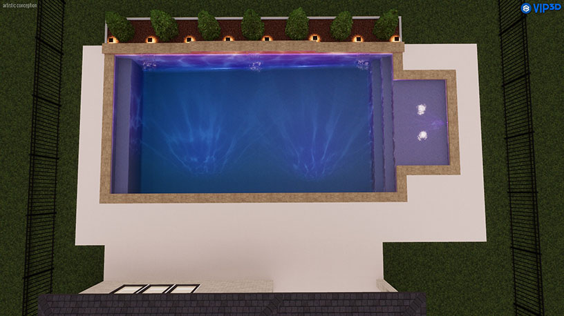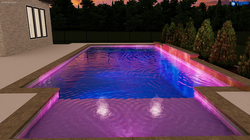 The pebble finish enhances the pool’s elegance, while two bubblers and two deck jets create playful water effects. Three lights and two skimmers ensure a serene and practical swimming experience. With a 600 sq. ft. spray deck and a Wi-Fi-enabled VSF pump, this pool offers the perfect blend of beauty, comfort, and modern convenience.